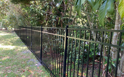 Aluminum fence is very aesthetically pleasing and adds a physical barrier where view can be maintained. Sometimes confused with wrought iron. Aluminum is highly corrosion resistant, coupled with powder coating, it withstands Florida's elements very well. We use aluminum fence that is American made.
